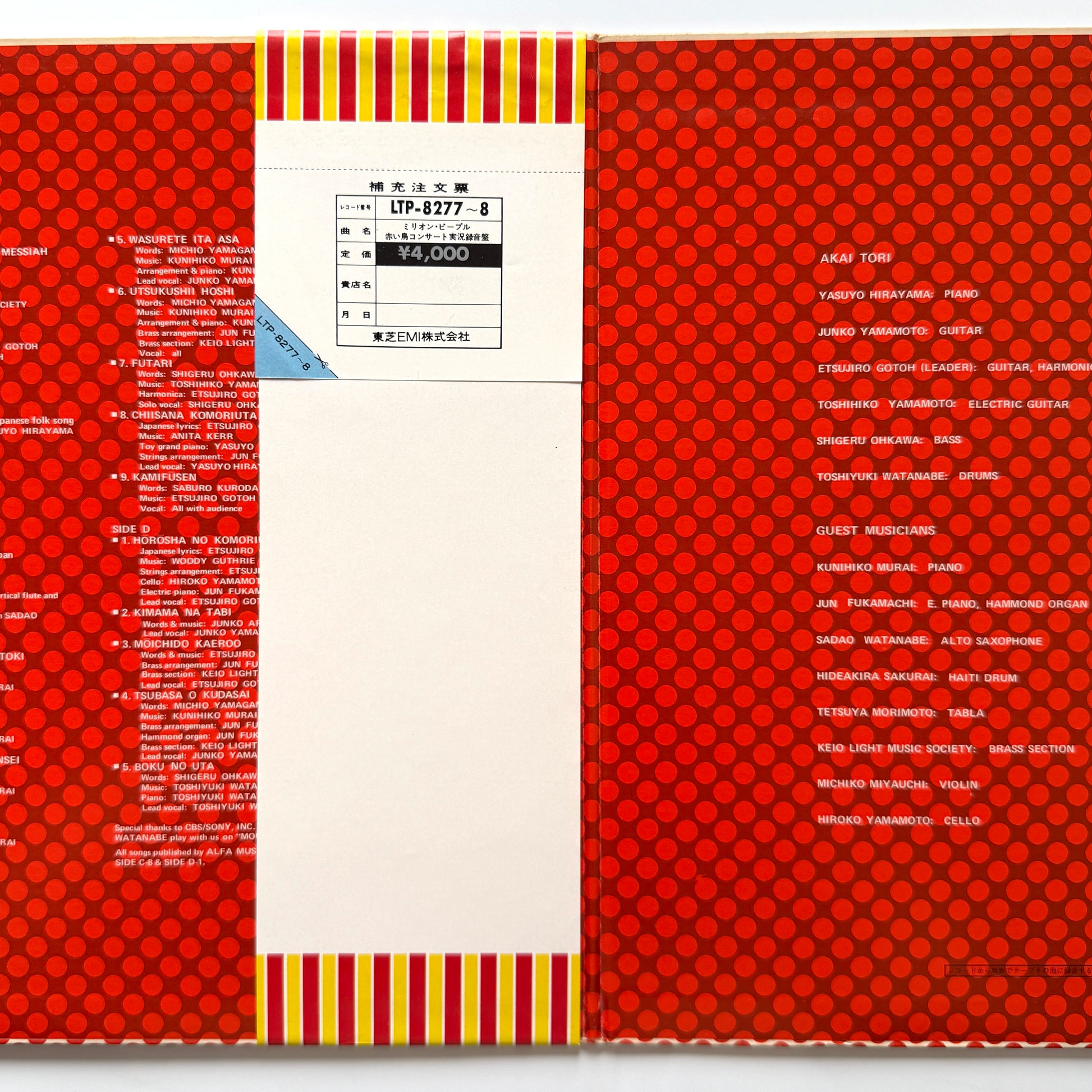 A live album by Japanese folk group Akai Tori. Side B features “Moukko,” a long-form, folk-inspired yet ferocious Black jazz-funk piece, with guest appearances by Tetsuya Morimura—also known for one of the most hard-to-find titles in Japanese jazz—along with alto saxophonist Sadao Watanabe and Jun Fukamachi on piano. The rest of the album is rooted in folk songs, but this one track alone is absolutely devastating.