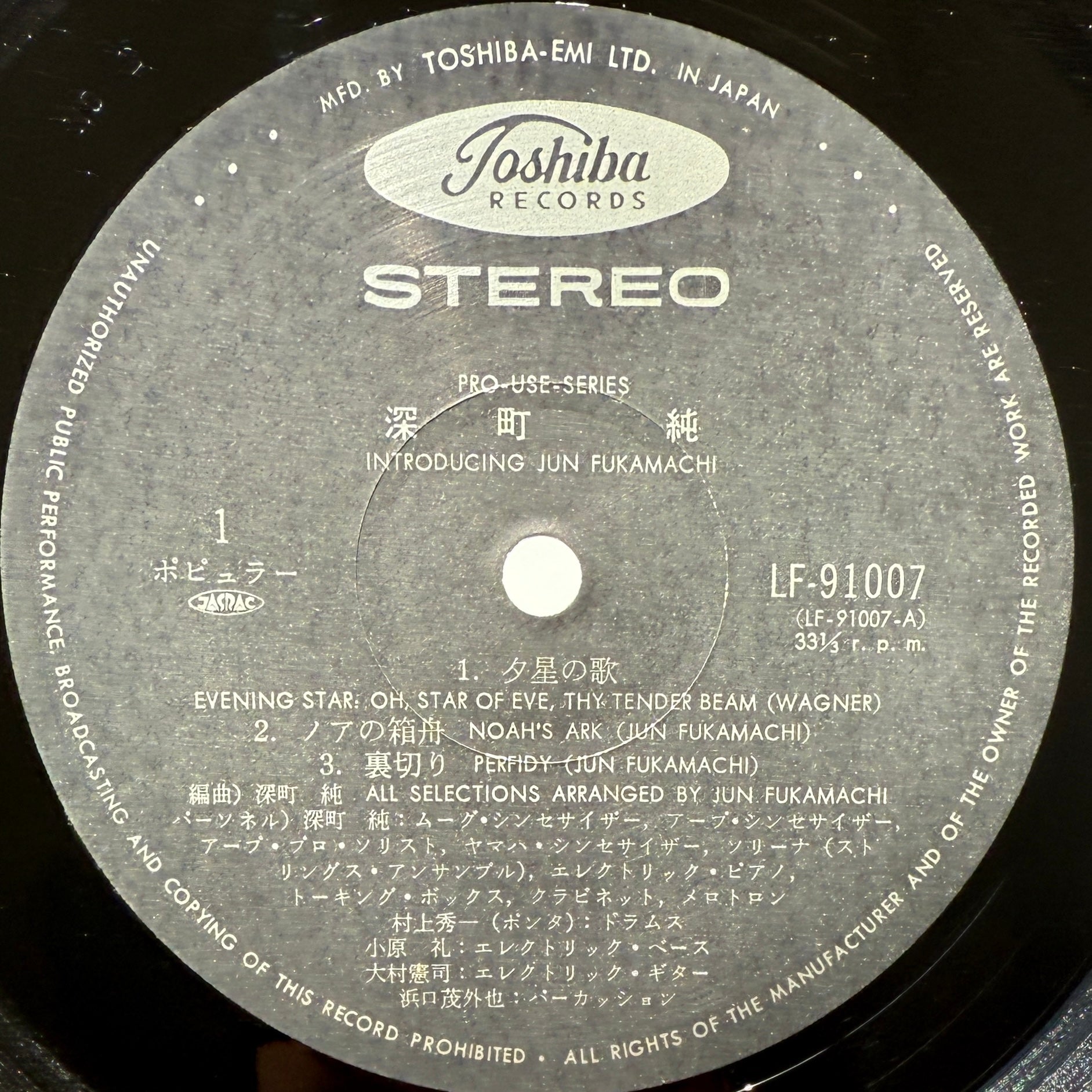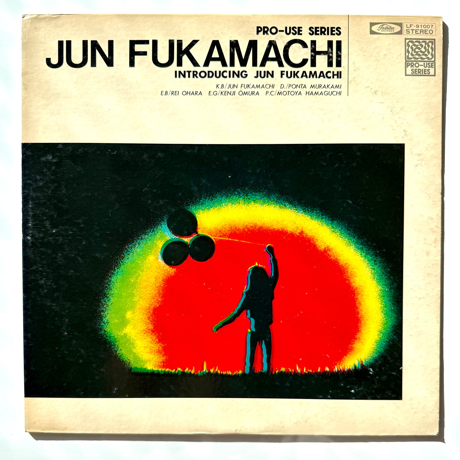 A masterpiece from the early fusion era by keyboardist Jun Fukamachi, part of his high-fidelity series. Includes jazz-funk tracks with drum breaks like “Bamboo Bong” and “Perfidy,” as well as the heavy funk tune “Noah’s Ark.” Drums by Ponta Murakami.
