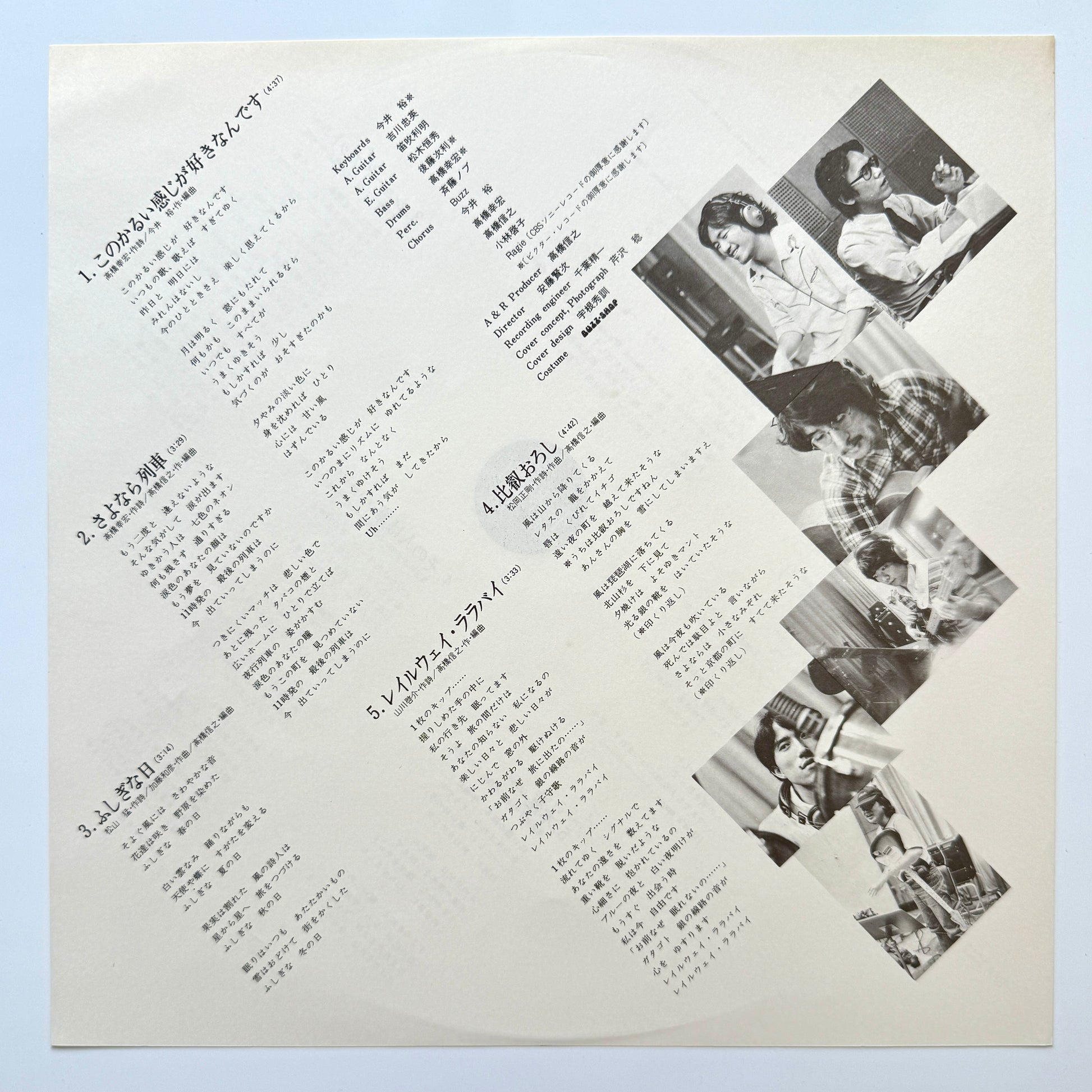 An album recorded with an all-star lineup including Sadistics and Tadahide Yoshikawa. Features Yu Imai’s mellow classic “このかるい感じが好きなんです,” the upbeat kayō city pop track “気分を出してもう一度,” and the mellow kayō song “ちょうどそんな風の中.” Drums by Yukihiro Takahashi are tight and precise.