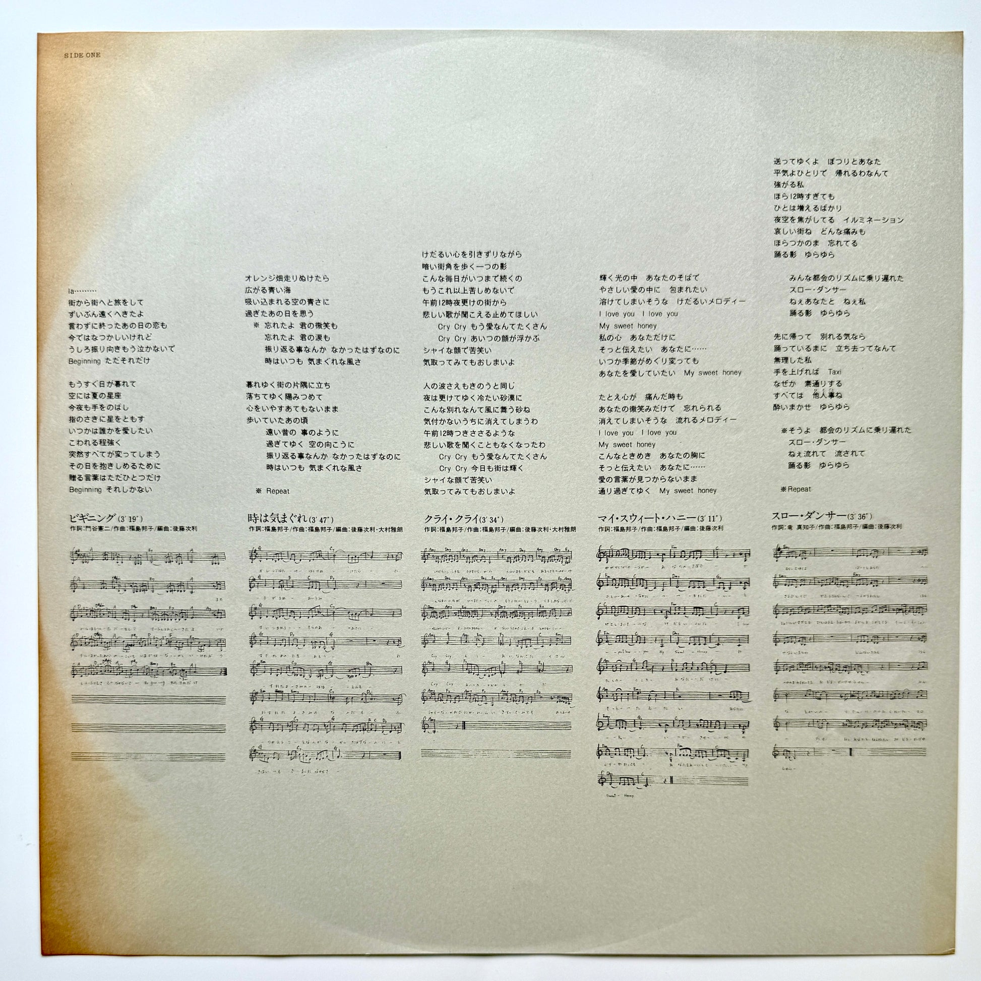 An underrated groovy city pop album arranged by Tsugutoshi Gotō, featuring Shigeru Suzuki and Tatsuo Hayashi. Includes the mid-tempo kayo city pop groove “Slow Dancer” and the funky track “Cry Cry.”