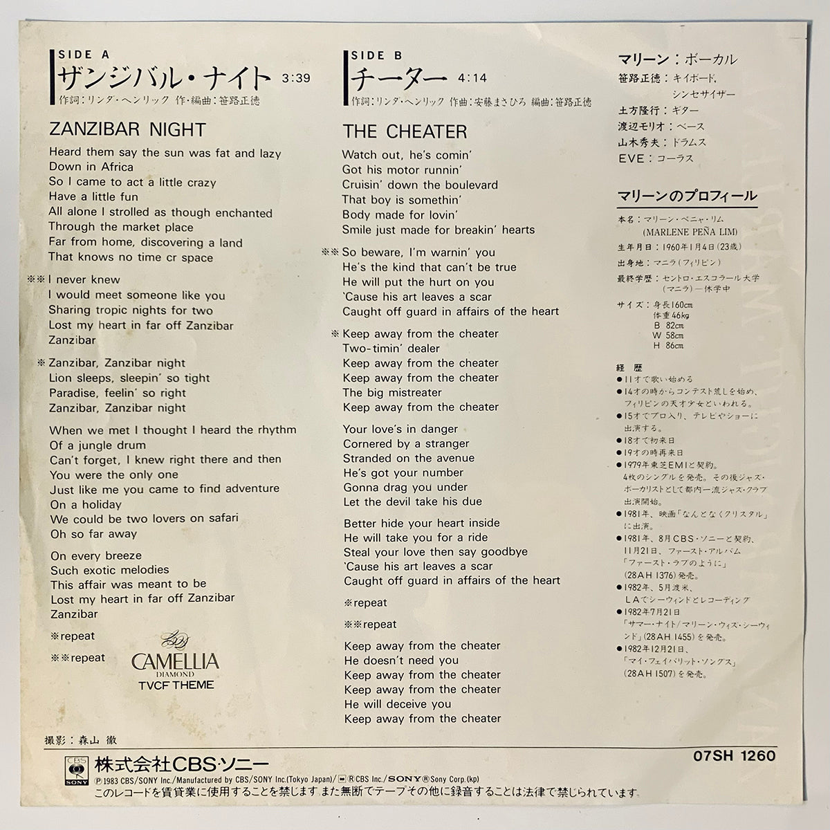 Marlene - Zanzibar Night / Cheater [1983 Japan Original] (7)