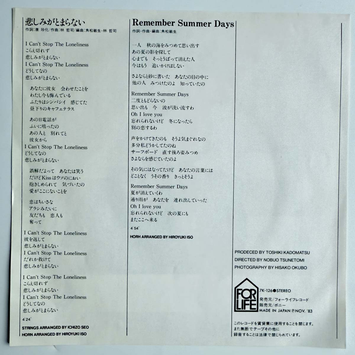 Anri - I Can'T Stop The Loneliness / Remember Summer Days [1983 Japan Original] (7)
