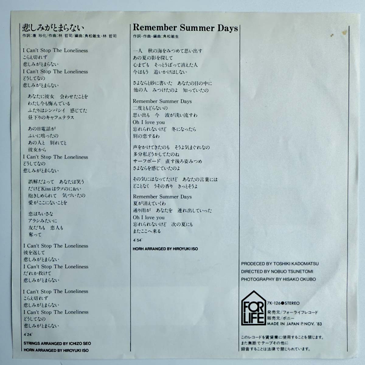 Anri - I Can'T Stop The Loneliness / Remember Summer Days [1983 Japan Original] (7)