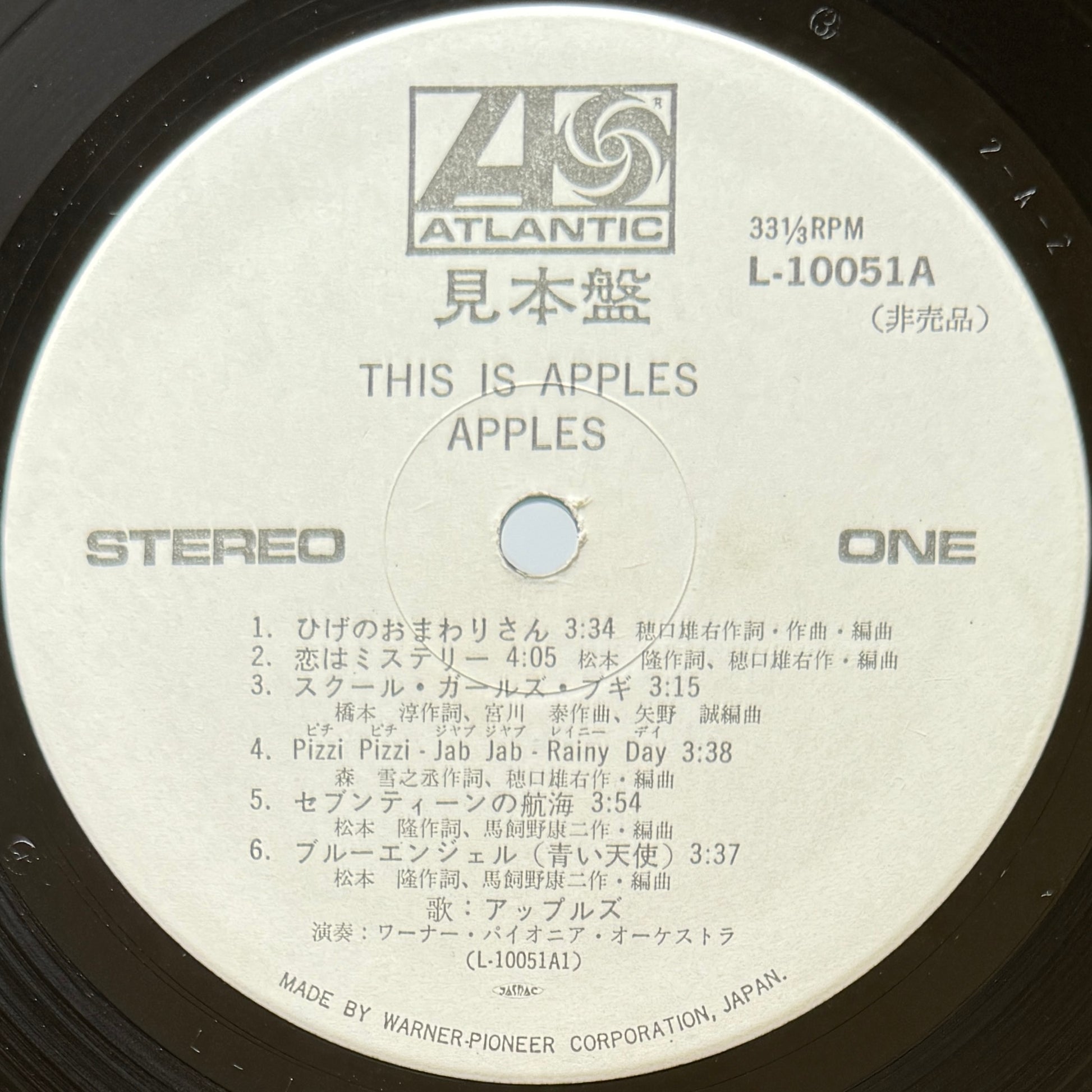 A rare album from the three-sister group Apples, later known as EVE. Side A produced by Norio Maeda and Takashi Matsumoto, while Side B features soulful covers of the Pointer Sisters and the Supremes. Packed with tight, funky grooves — includes the hard-to-find single “ひげのおまわりさん.”